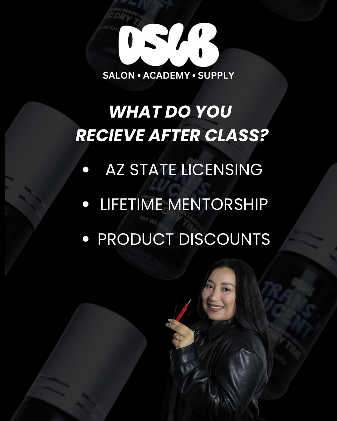 1:1 Class so you get to choose what schedule fit’s tour lifestyle needs the best. Lifetime discounts, lifetime lifetime mentorship and a fully loaded kit so you leave ready to start your lashing journey. We have also partnered up with a financial educator to give you all the advise and guidance to running a successful business!
